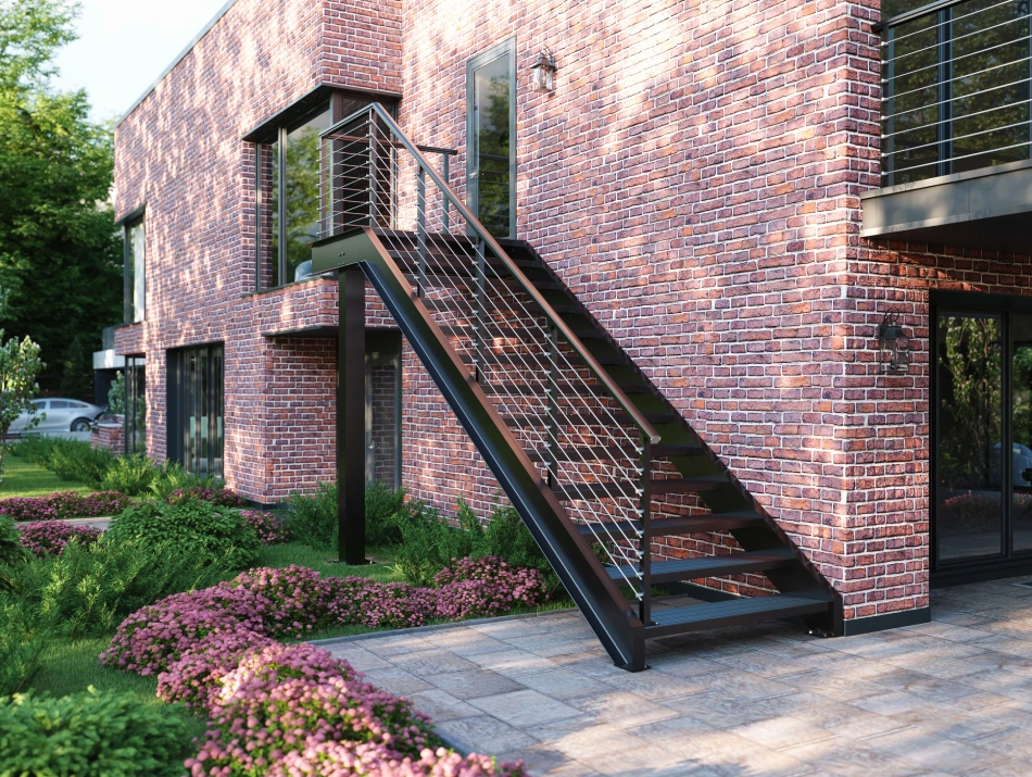Featuring open risers that create an illusion of lightness and transparency, The Shiloh adds an air of sophistication to any outdoor environment. Its clean lines, refined finishes, and customizable options allow you to tailor the staircase to your unique style and vision, creating a truly bespoke centerpiece that captivates and inspires.